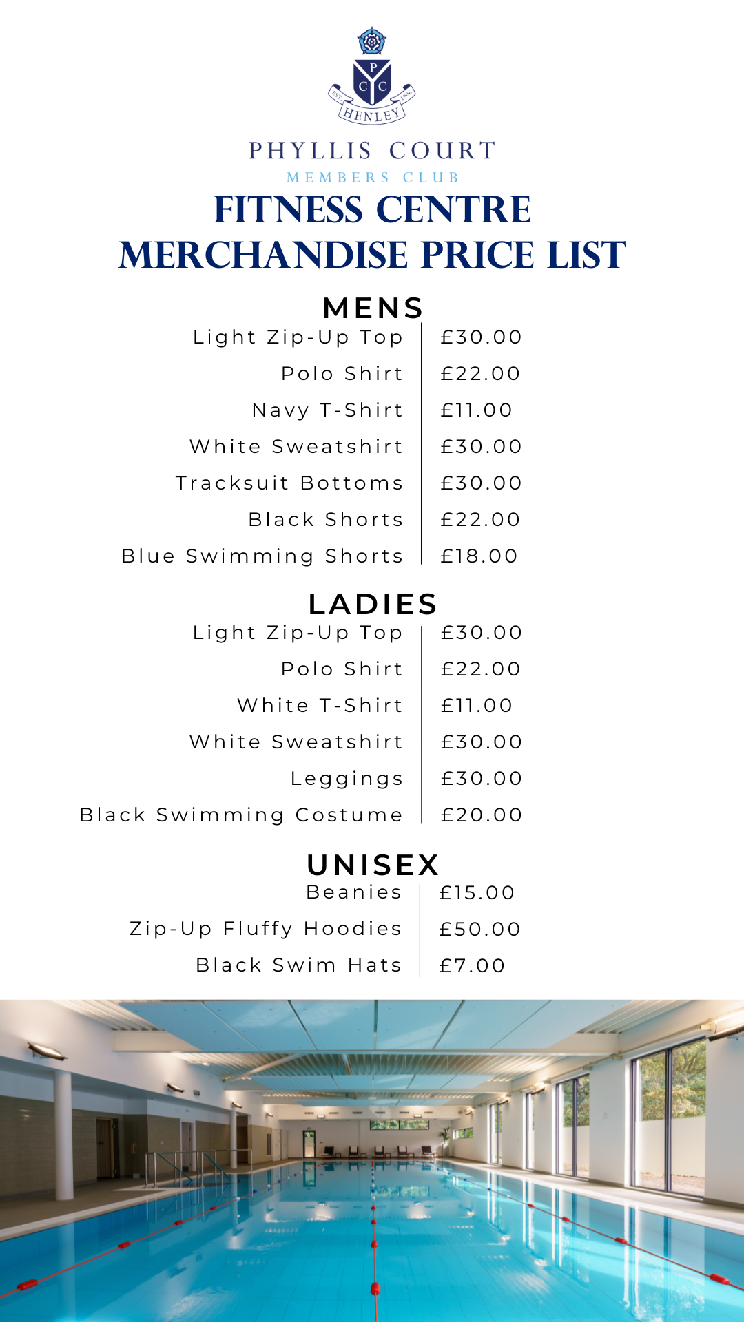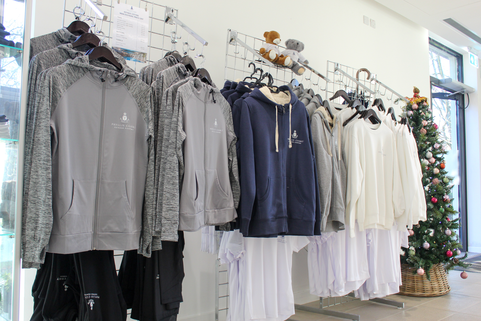 We have a selection of Phyllis Court branded merchandise on sale in the Fitness Centre.